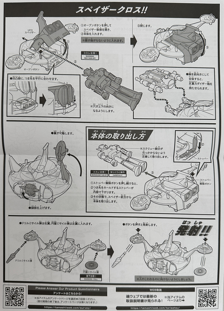 あと当時版では円盤状のミサイル(付属のスピンソーサーとは違う)が付属していたのですがそちらはオミット